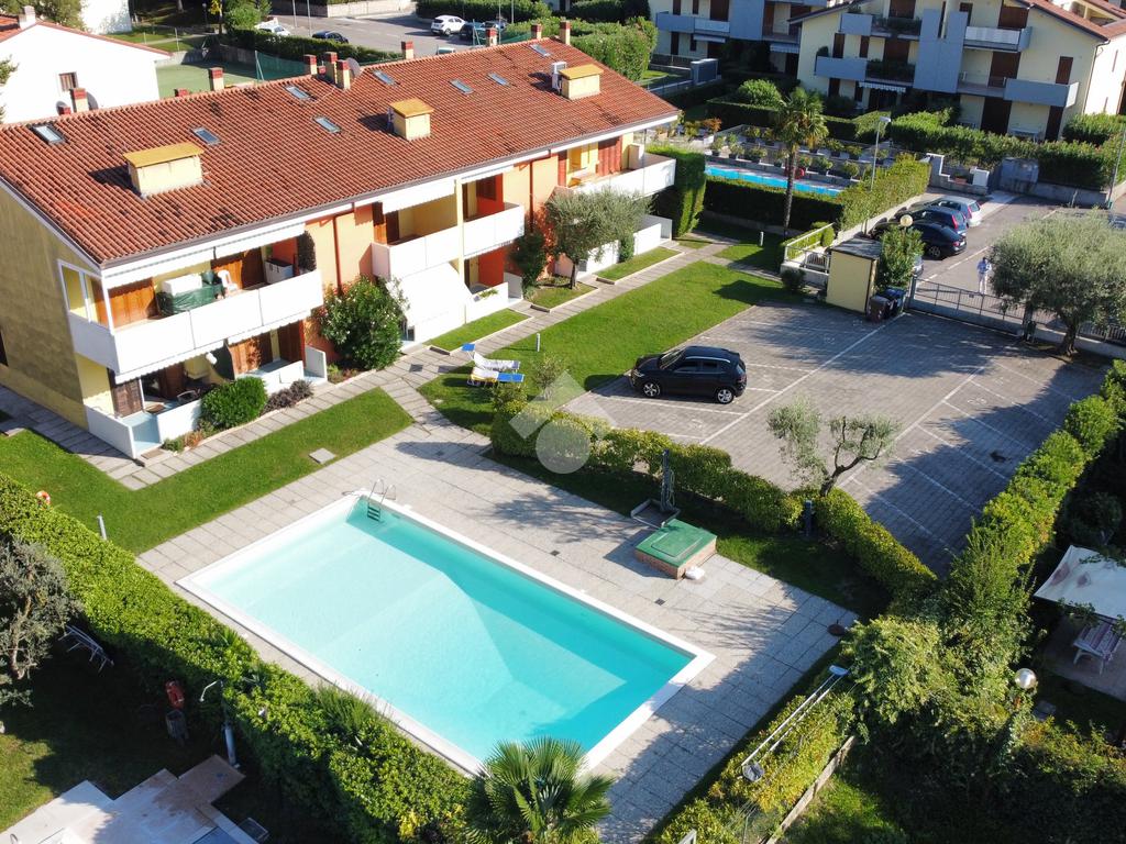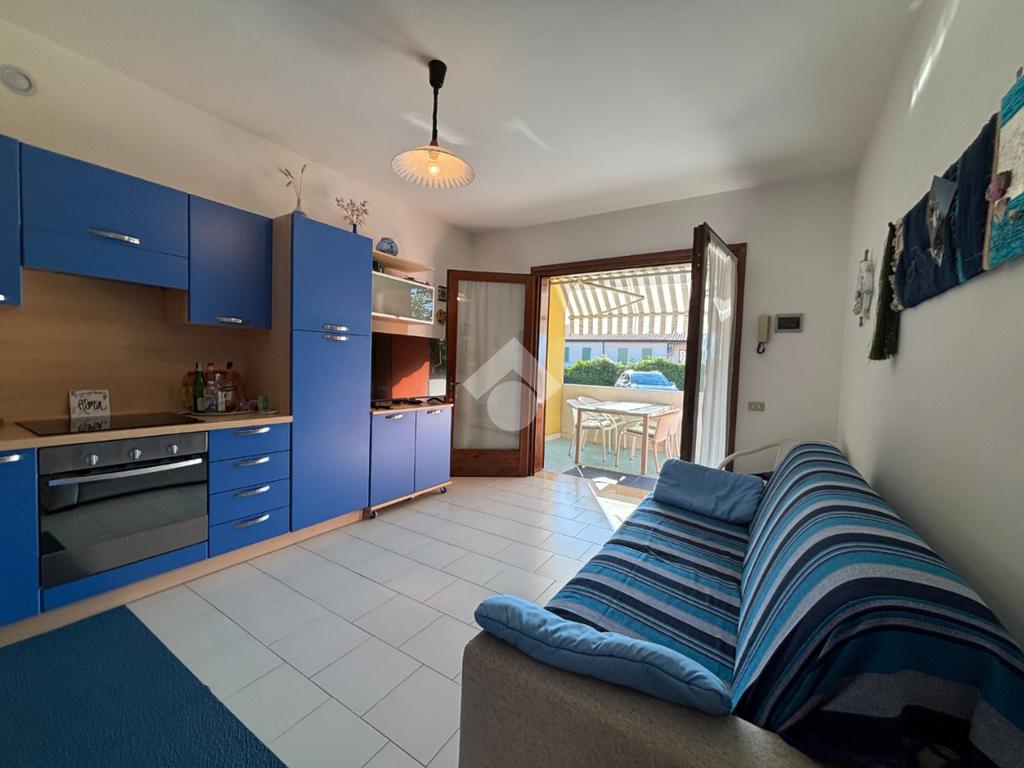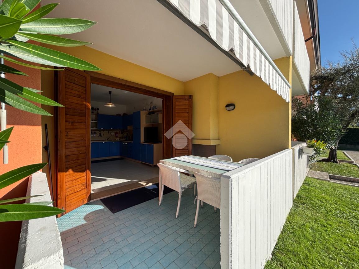 LAZISE - In residence con piscina comodo al centro di Lazise e raggiungibile a piedi in pochi minuti, offriamo in vendita un appartamento trilocale al piano terra composto da soggiorno con angolo cottura, camera da letto matrimoniale, cameretta e bagno.