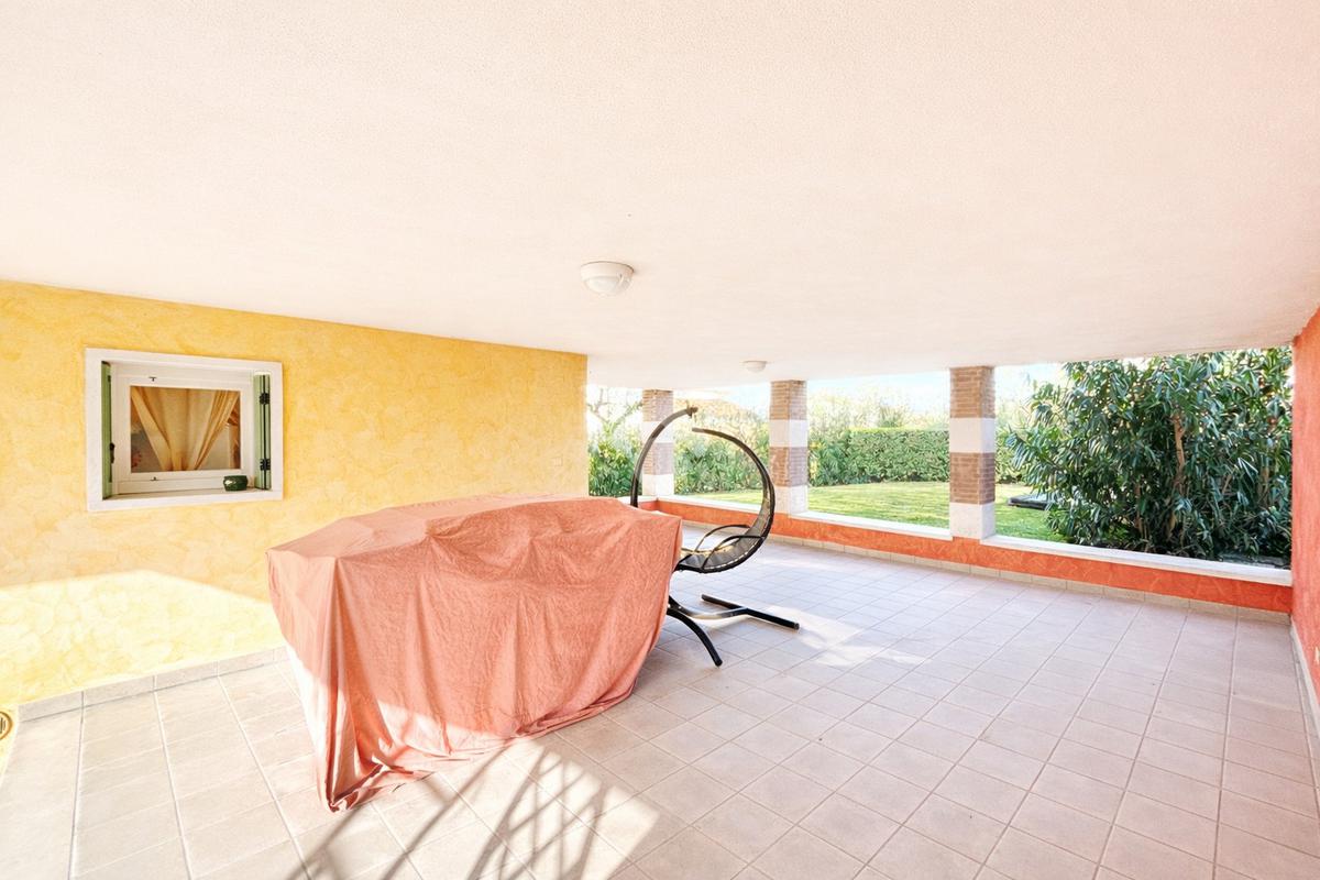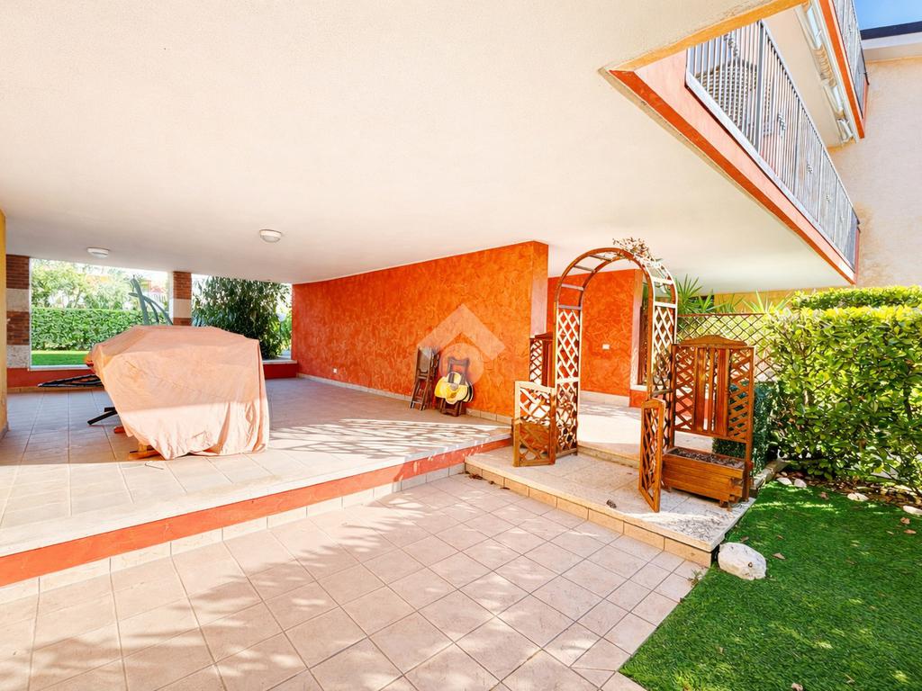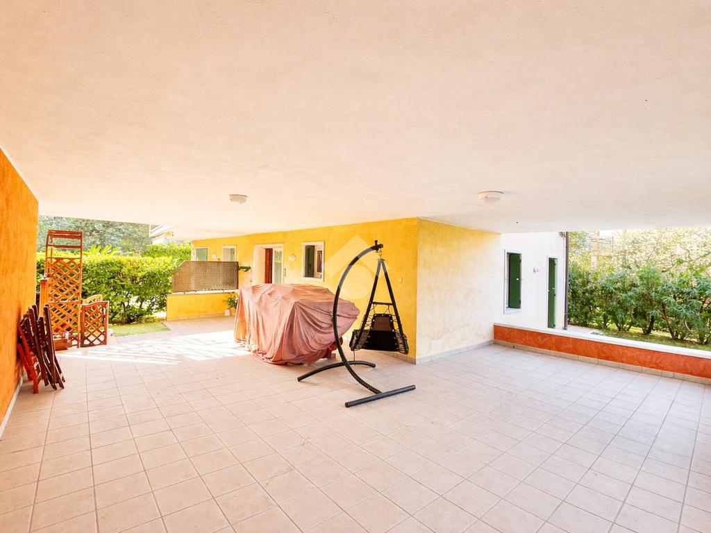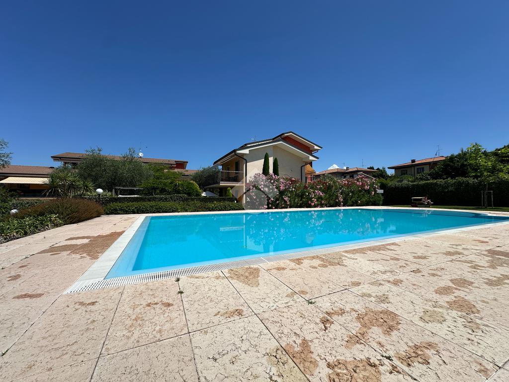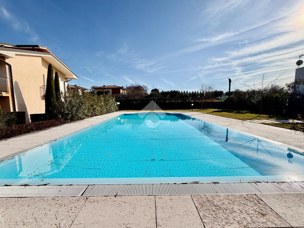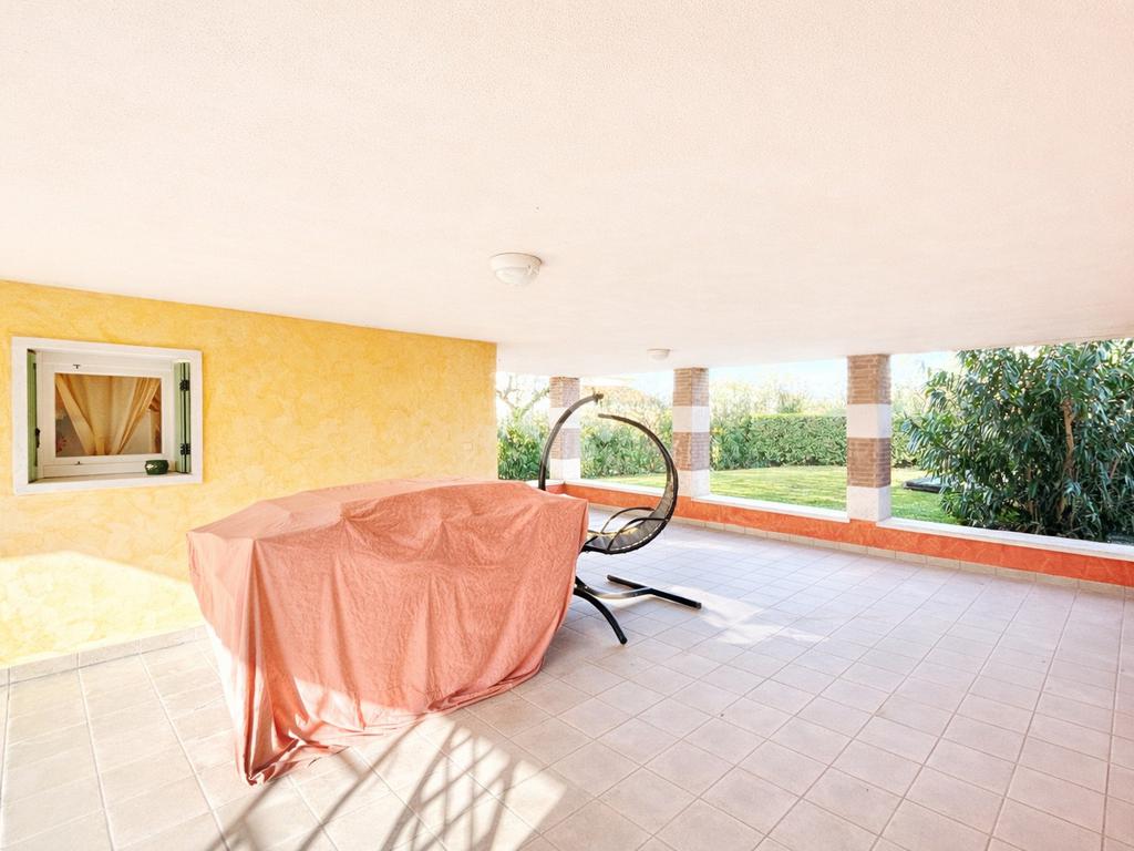 La zona giorno si apre su un ampio giardino privato e portico privato , perfetto per momenti di relax all'aperto. Gli spazi esterni sono arricchiti da una piscina condominiale, ideale per rinfrescarsi durante le calde giornate estive. L'appartamento è dotato di aria condizionata, garantendo un ambiente confortevole in ogni stagione.