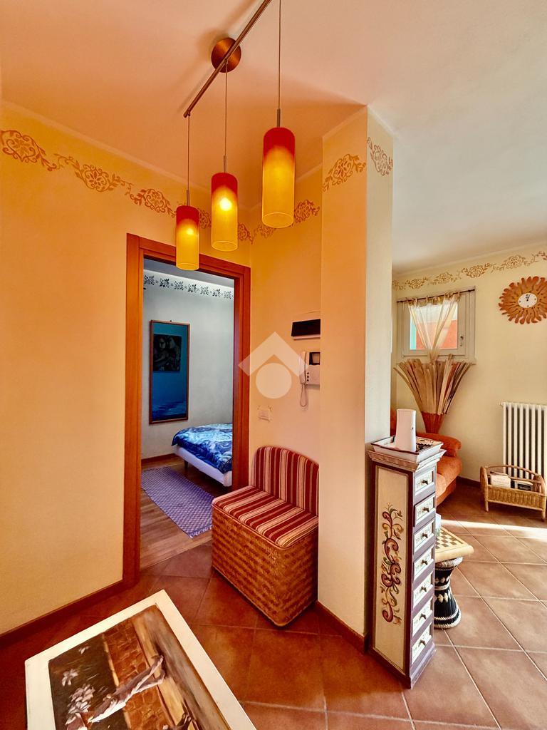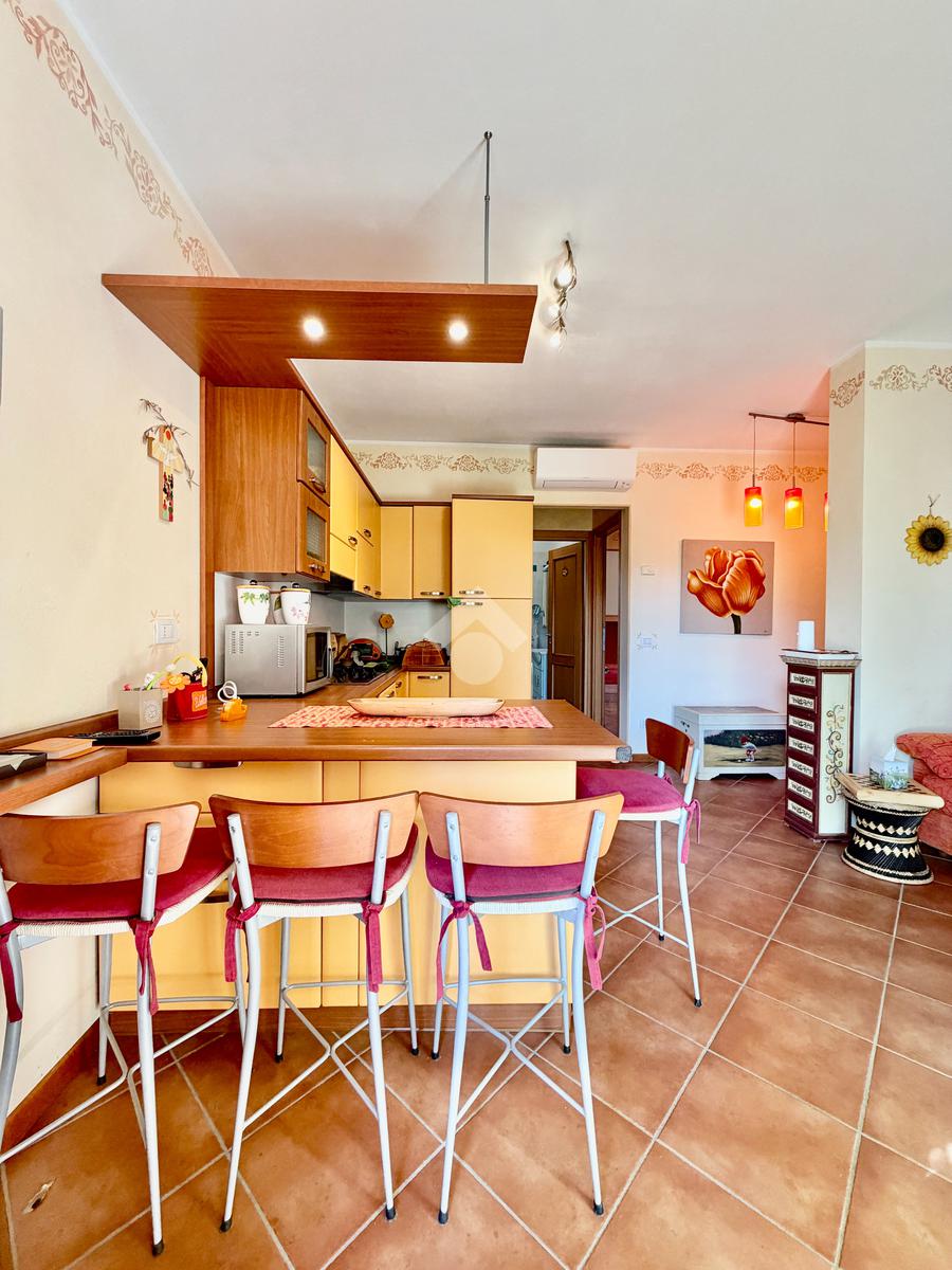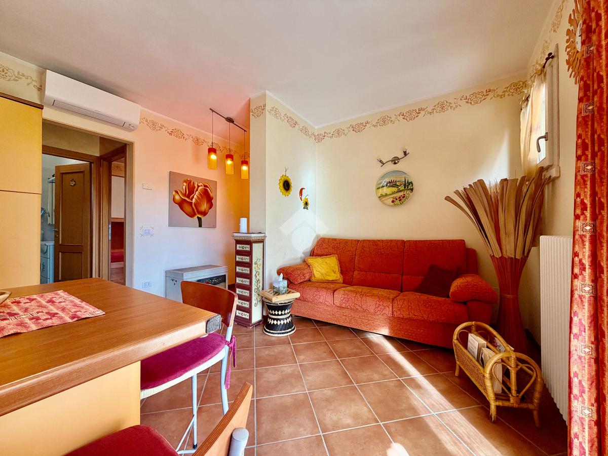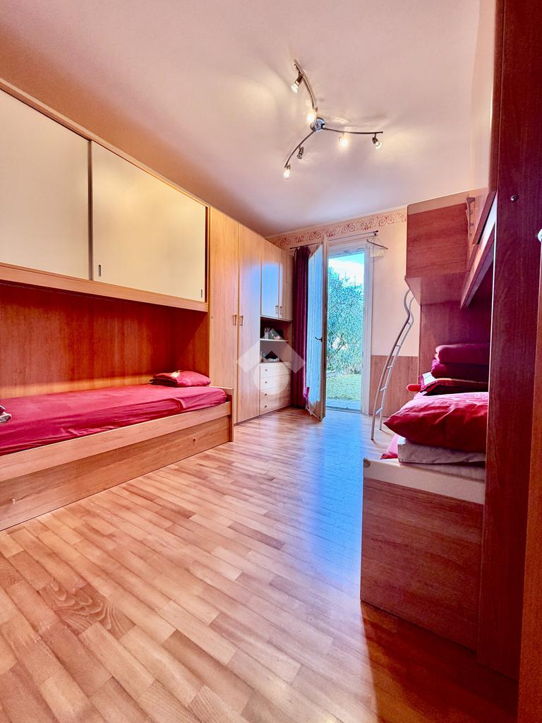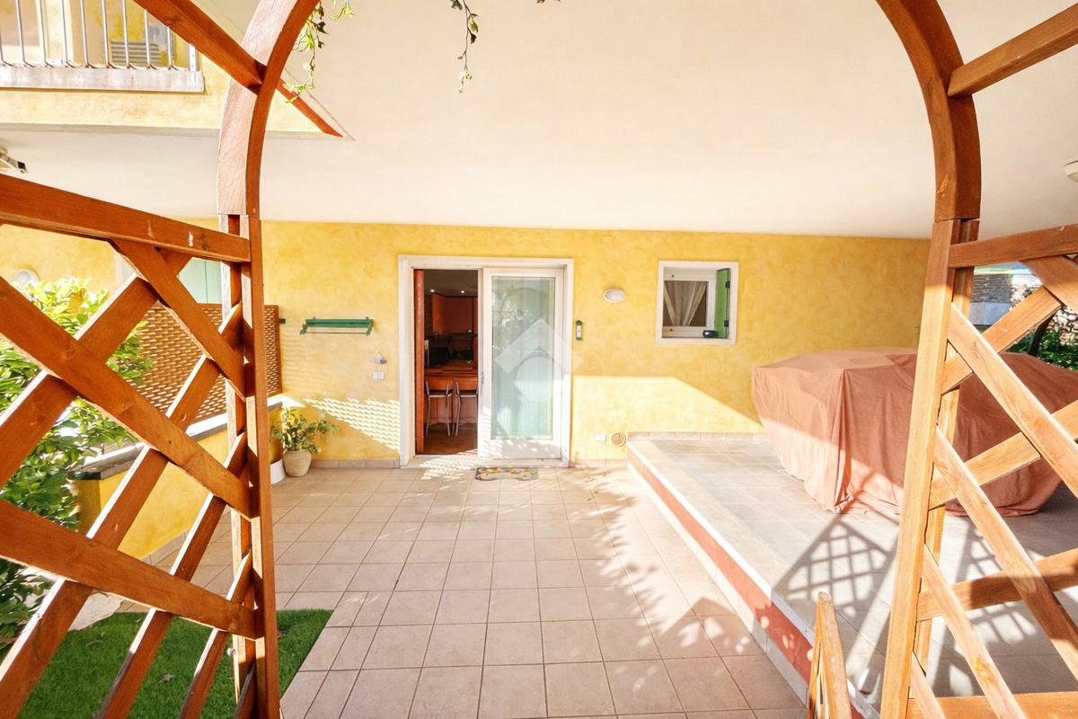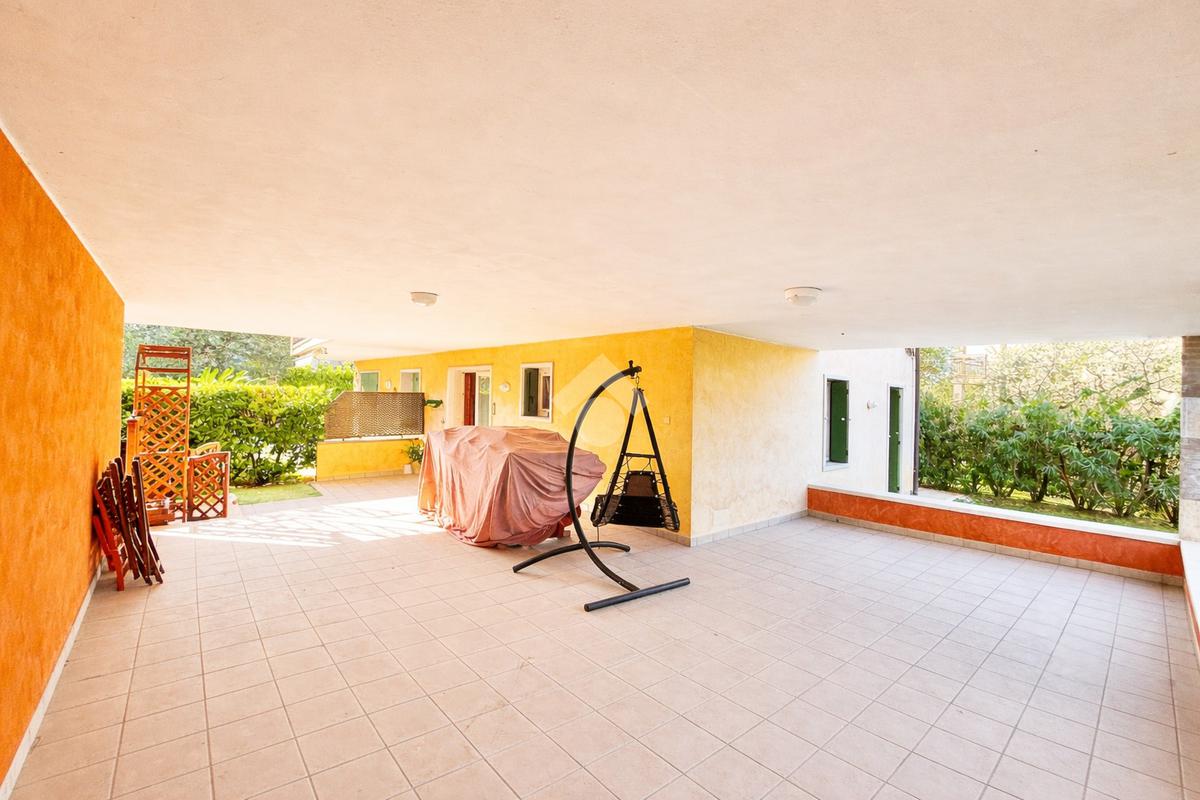 La zona giorno si apre su un ampio giardino privato e portico privato , perfetto per momenti di relax all'aperto. Gli spazi esterni sono arricchiti da una piscina condominiale, ideale per rinfrescarsi durante le calde giornate estive. L'appartamento è dotato di aria condizionata, garantendo un ambiente confortevole in ogni stagione.