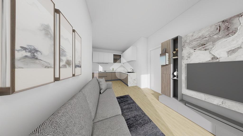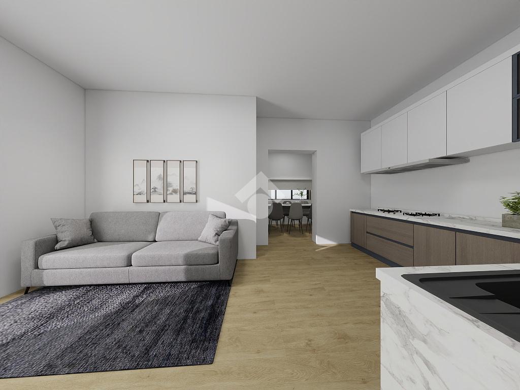 Tramite l'ingresso indipendente si accede al giardino privato e alla veranda chiusa con infissi in vetro, dove si trova anche la lavanderia. Salendo le scale si arriva sul terrazzo luminoso e con vista panoramica; L'appartamento internamente è composto dal soggiorno con angolo cottura open-space, due camere da letto ampie e un bagno finestrato con doccia.