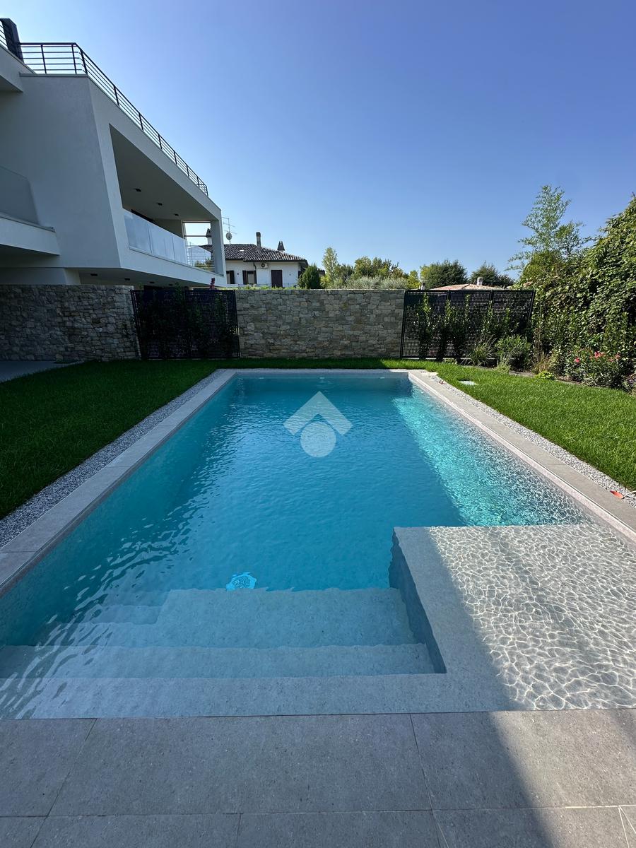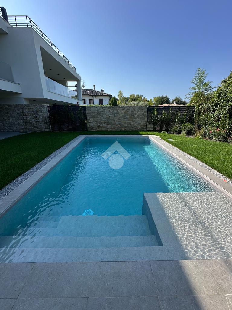 LAZISE NUOVA VILLA CLASSE A IN PRONTA CONSEGNA - Nella frazione di Pacengo, a soli 200 metri dalla riva del lago raggiungibile a piedi tramite stradina privata, proponiamo questa nuova villa, in contesto di 3 unità completamente indipendente e con piscina privata al sale.