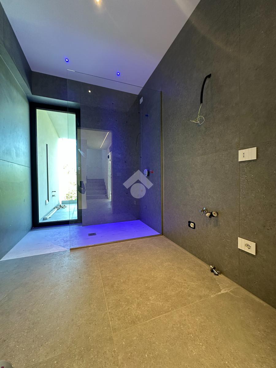 La villa dispone inoltre di un ampio interrato, completamente finito e riscaldato di circa 150 mq, dove trova spazio una taverna con ampia bocca di lupo da 4 metri, il terzo bagno con doccia e un ripostiglio. Completa le dotazioni di questa abitazione il garage privato triplo.