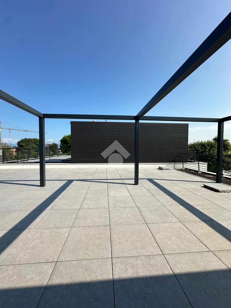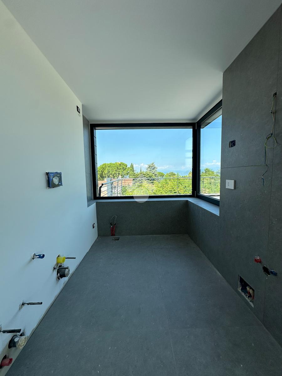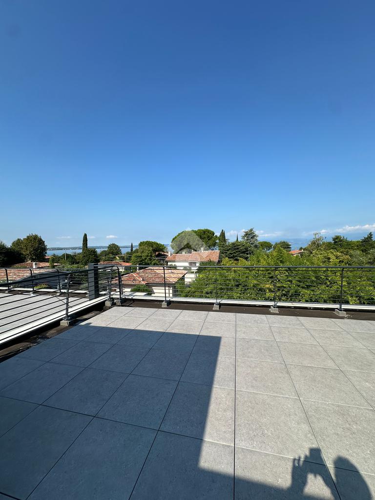 Il giardino privato di 200 mq, completamente piantumato, e l'ampio porticato di oltre 80 mq assicurano un comodo sfogo esterno per godere al massimo la bella stagione; al piano terra si trova la zona giorno con angolo cottura e con le grandi vetrate che garantiscono un'ottima luminosità; allo stesso piano è presente anche un primo bagno finestrato con doccia. Salendo le scale, al piano primo, trovano spazio due camere matrimoniali e il bagno principale con piatto doccia da 2 metri; uscendo da entrambe le camere si accede alla terrazza esterna di oltre 90 mq, in parte aperta e in parte coperta (già predisposta per una chiusura con vetrate panoramiche). Salendo al secondo piano si accede alla terrazza solarium di oltre 130 mq con vista lago, pergola chiudibile e attacchi per eventuale vasca jacuzzi.