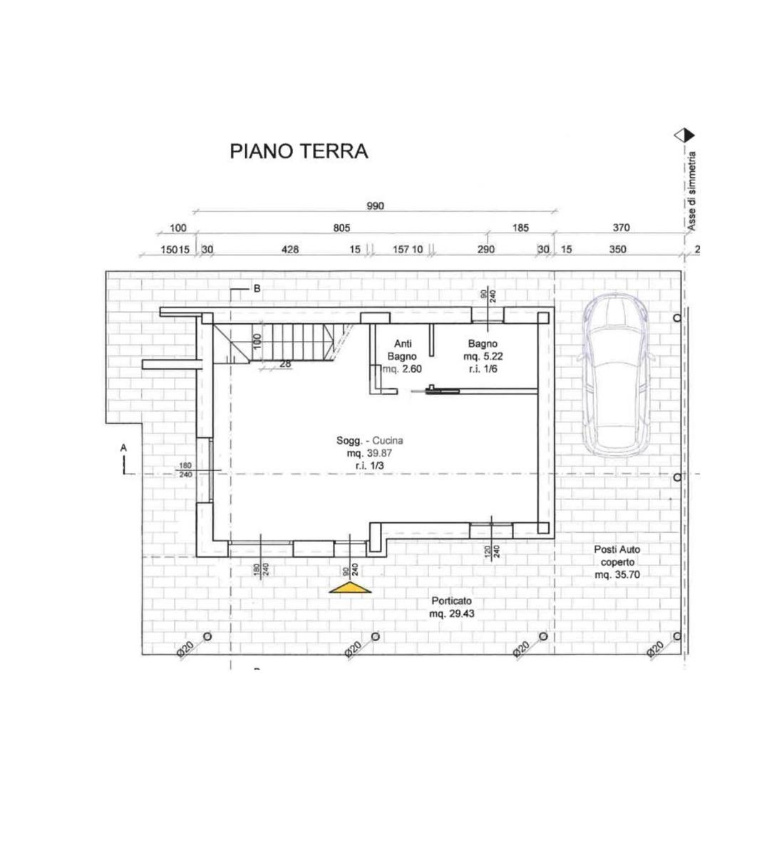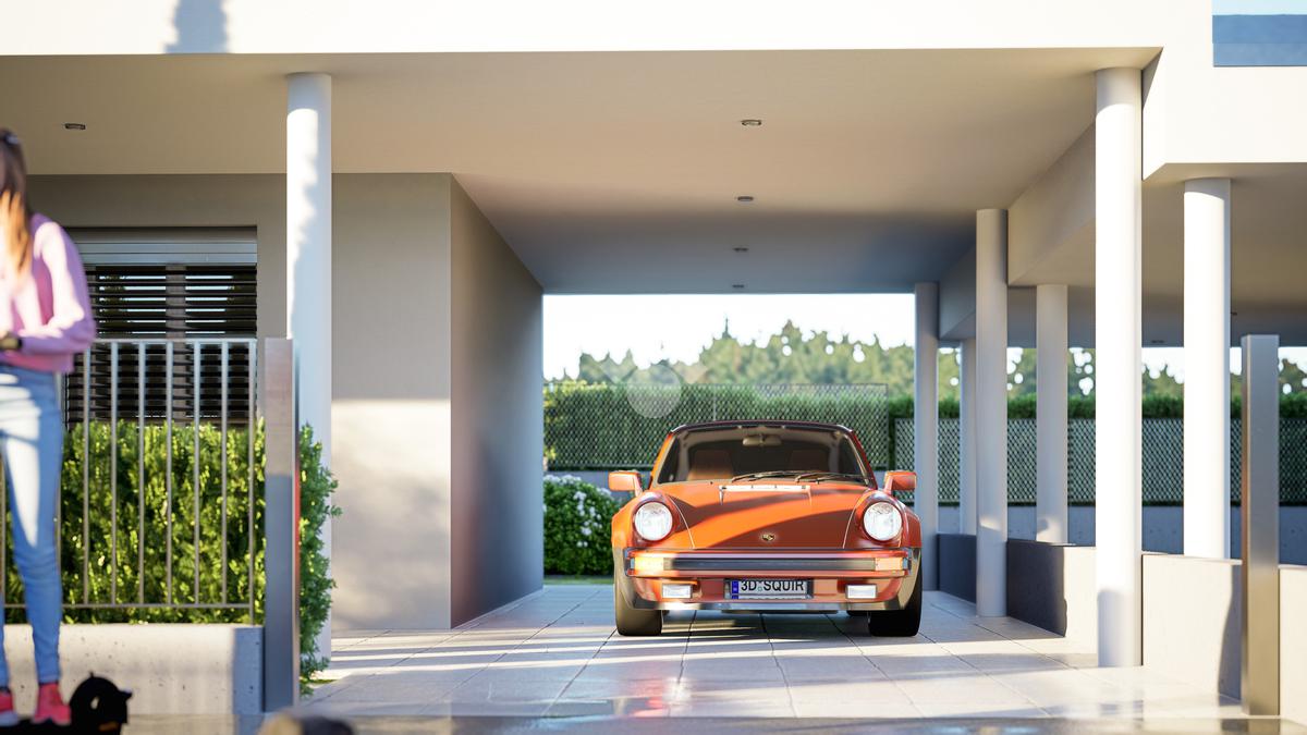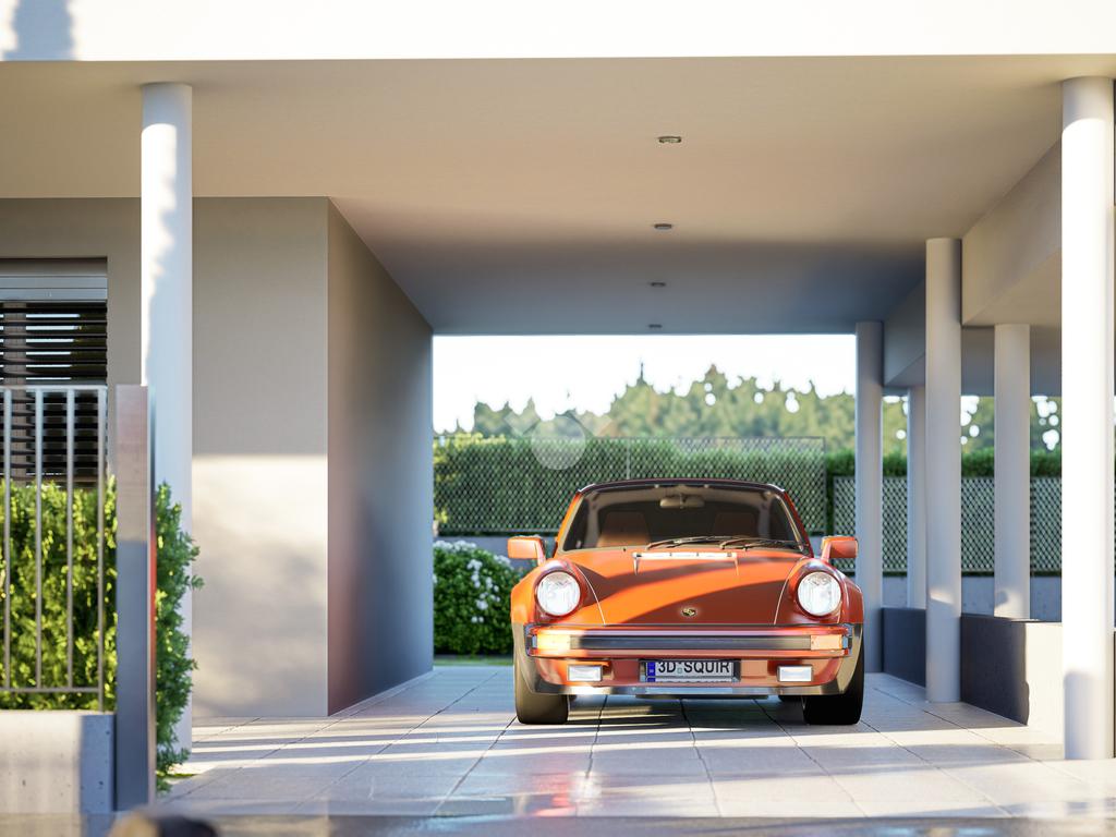 Un cancelletto privato permette l' accesso alla proprietà in un' area coperta di 36 mq adibita alle auto e delle colonne portanti sostengono un portico che gira attorno alla casa consentendo di vivere l' outdoor con il massimo comfort.