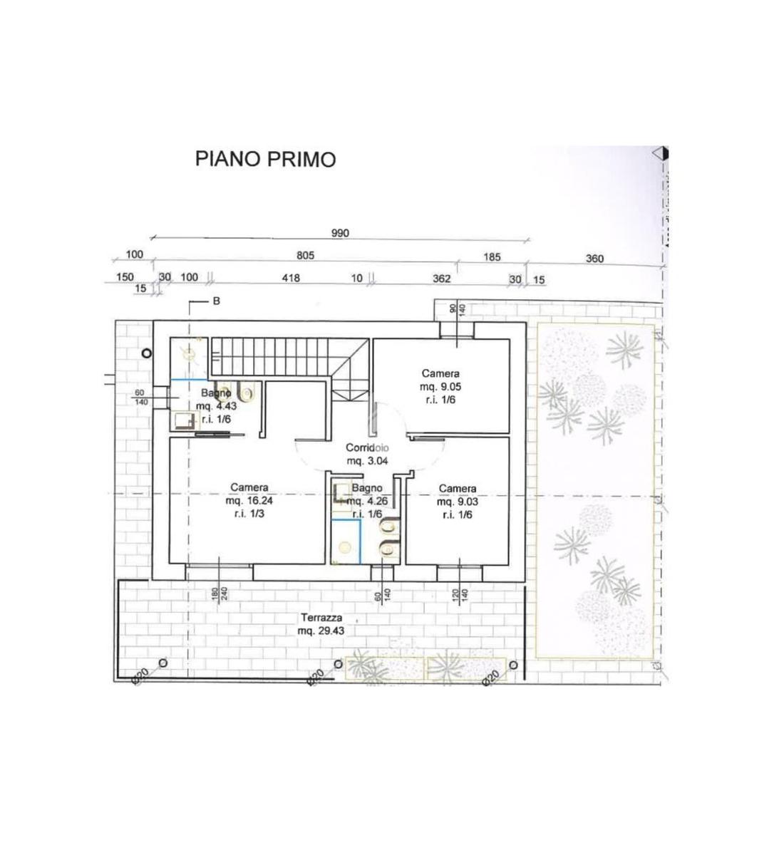 La costruzione, della quale è già stato realizzato il primo solaio, è composta di un lumionoso soggiorno con cucina ed un bagno al piano terra, 3 camere da letto e doppi servizi al piano primo dove le stanze affacciamo su un ampio terrazzo coperto di 29 mq.