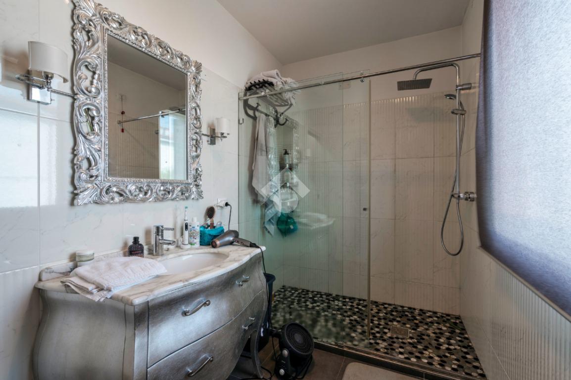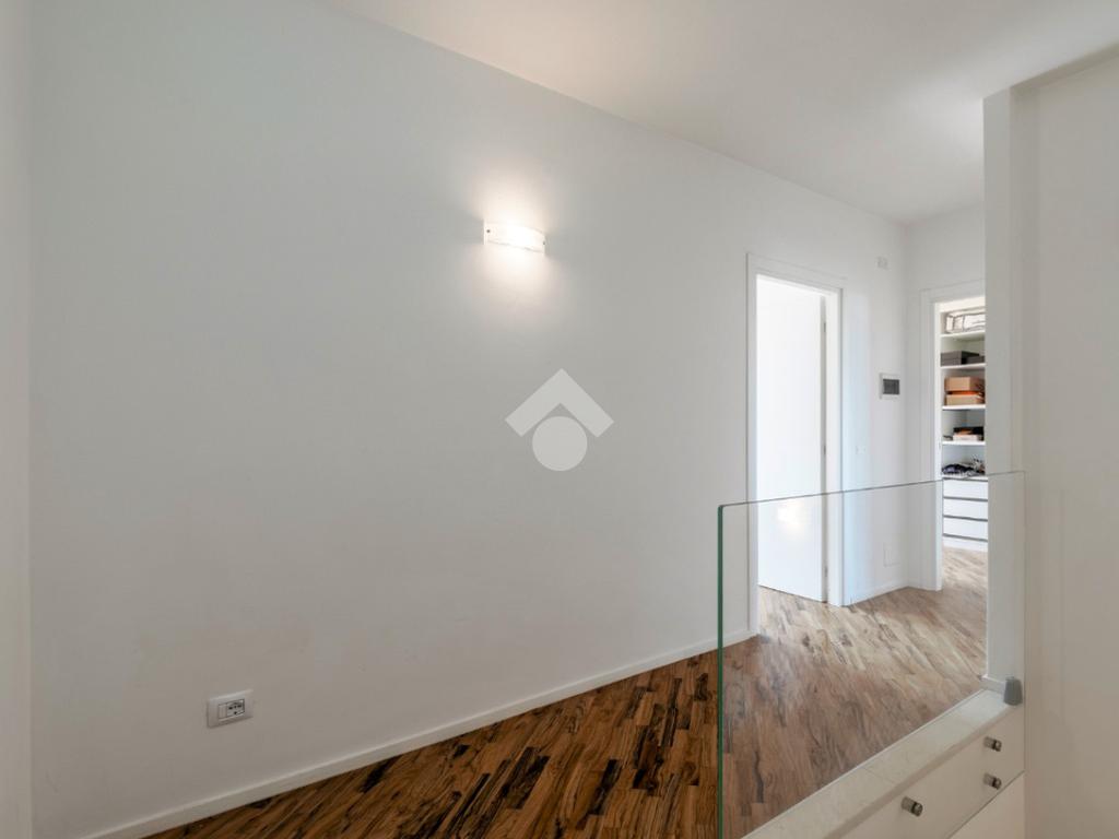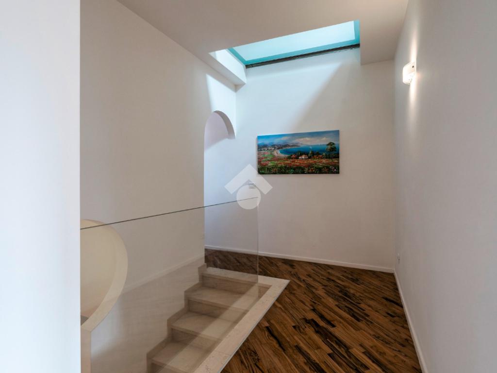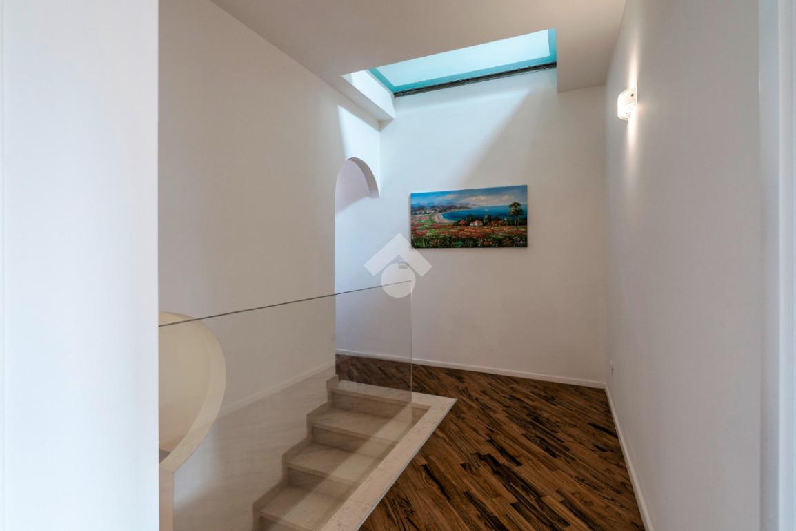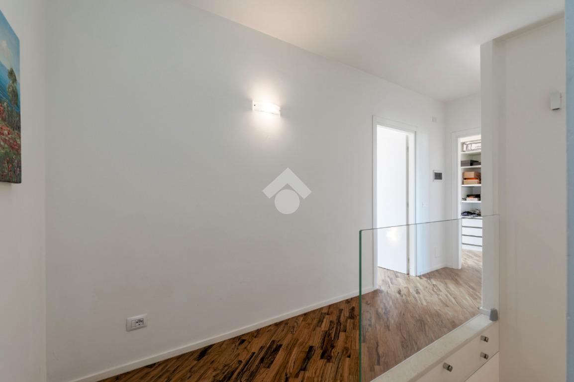Salendo la scala in marmo bianco si accede al piano primo, dove trovano spazio le tre camere da letto, di cui due matrimoniali e una singola, e il bagno padronale finestrato e con grande doccia walk-in; l'intero piano, fatta eccezione per il bagno, è pavimentato con pregiato parquet di ulivo.