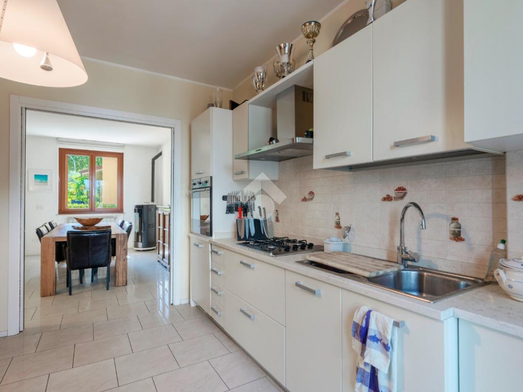 L'abitazione, ultimata nel 2013, si sviluppa su tre piani fuori terra oltre all'interrato; al piano terra, accedendo dal giardinetto d'entrata, si trova l'ampio e luminoso soggiorno di circa 40 mq con stufa a pellet; suddivisa dal soggiorno tramite una doppia porta a scrigno, si trova la cucina abitabile con porta finestra per accedere al giardino retrostante, dove è possibile mangiare all'aperto; sullo stesso piano si trova il bagno di servizio, finestrato e con doccia.