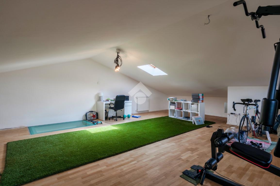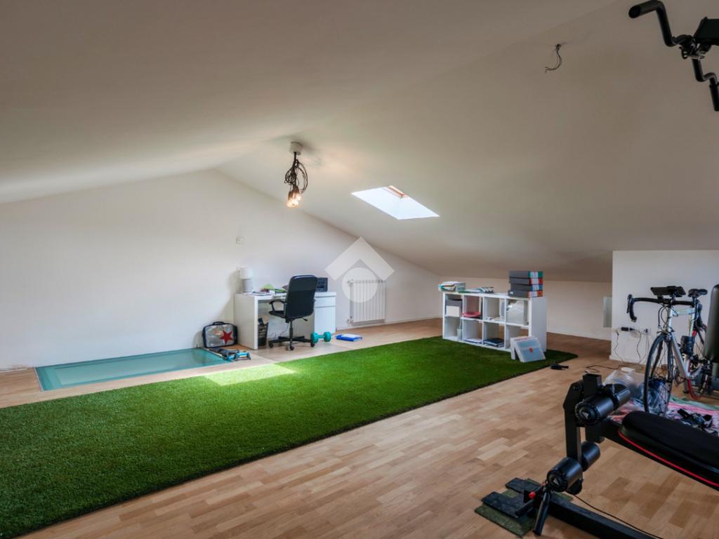 Tramite una ulteriore scala si accede al piano secondo, dove troviamo la mansarda open space con generose altezze, adatta come stanza hobby/studio e dotata sia di finestre che di velux sul tetto.